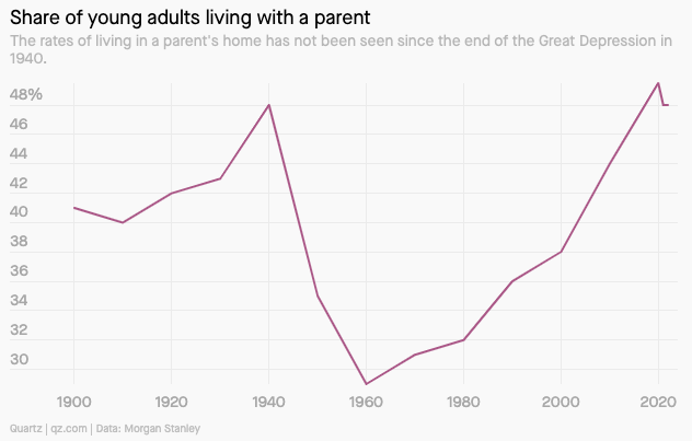It was recently reported that half of 18-29 year old Americans are living with their parents.